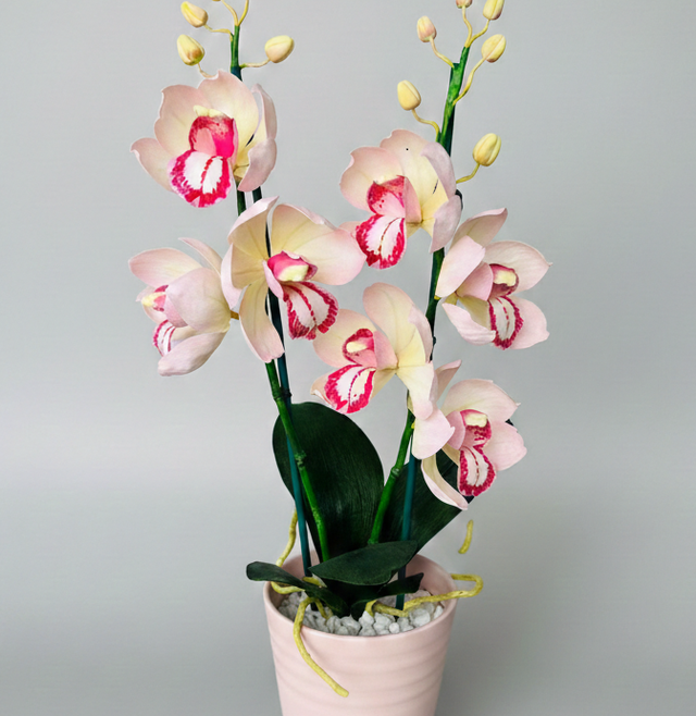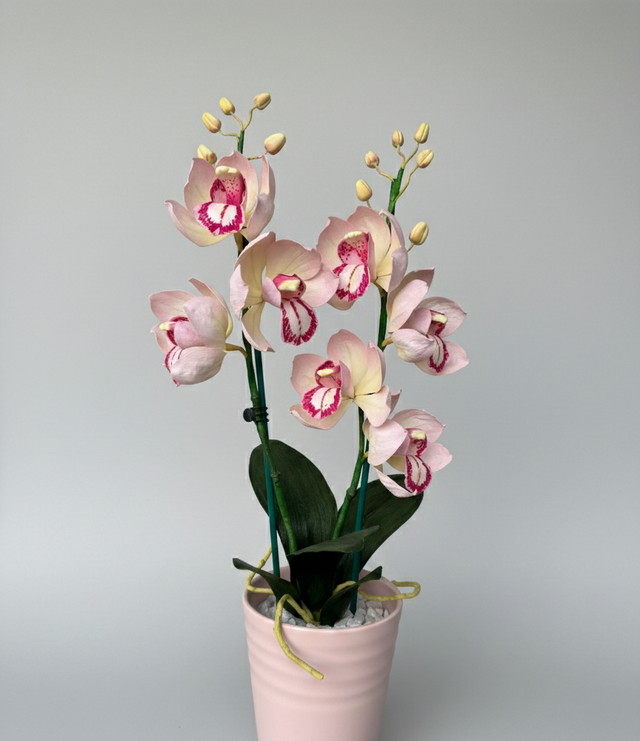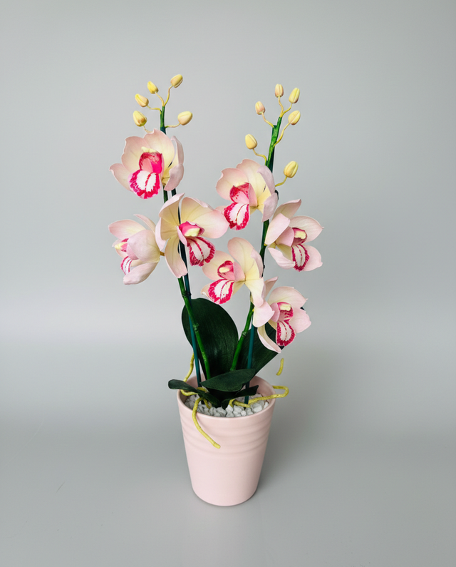 Élégante orchidée réalisée en papier doublé de haute qualité, avec des finitions délicates et un aspect naturel. Présentée dans un pot en céramique raffiné, cette création décorative apporte une touche de fraîcheur et de sophistication à tout intérieur.